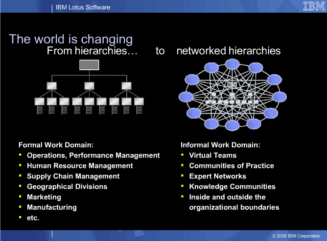 le stutture gerarchiche diventano reti di gerarchie mentre la fuori, nella rete, emerge un nuovo web sociale e collaborativo fatto di blog, di wiki, di applicazioni composte....